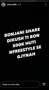Ai ka publikuar para pak orëve një postim në profilin e tij në Instagram, ku shkruan “Bonjani share dikush t’i bon 500 mijë huti në ‘Freestyle’ se gjynah”.
