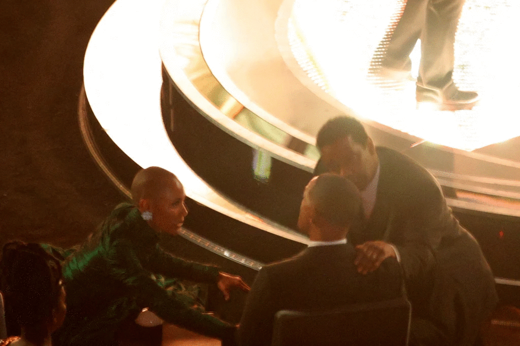 Kamera më pas e kapi Smith duke u ngjitur në skenë dhe duke goditur me shuplakë Rock-un, teksa kur u kthye në vendin e tij, ai bërtiti: “Mbaje emrin e gruas sime larg nga goja jote”.