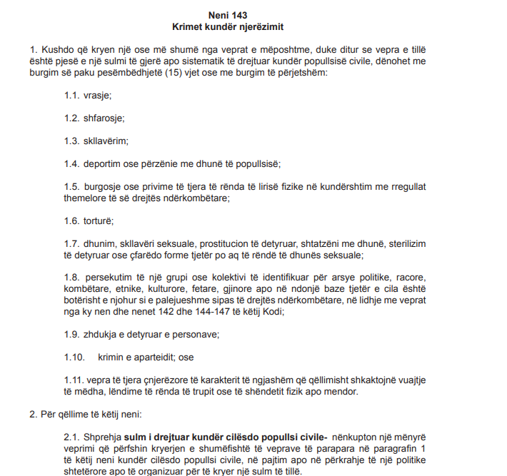 1.4. deportim ose përzënie me dhunë të popullsisë;