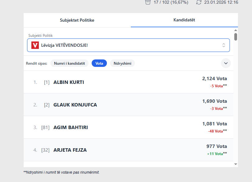 Deri në këto momente është kandidati i VV`së për deputet Agim Bahtiri që i janë minusuar 48 vota nga ky rinumëirmin.