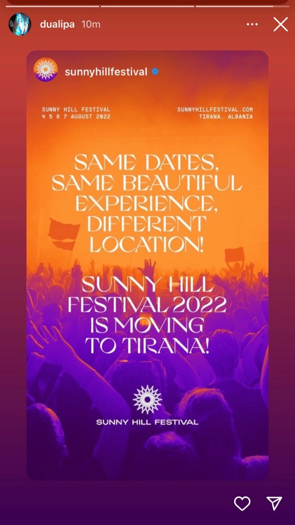 Edhe Dua Lipa reagon pasi festivali “Sunny Hill” u zhvendos në Tiranë