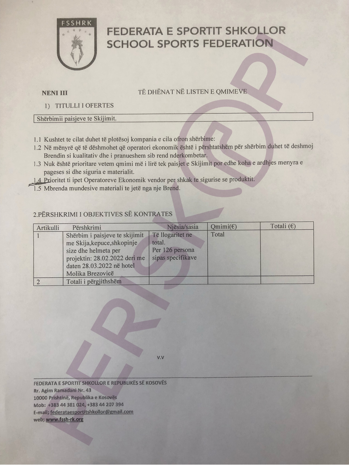 “Tenderin e ka fituar kompania e quajtur Omnisport, sipas kritereve të përcaktuara. Shifra e saktë e tenderit nuk po më kujtohet”, i tha Periskopit, Agron Dubovci, përfaqësues i Federatës së Sportit Shkollor të Kosovës.