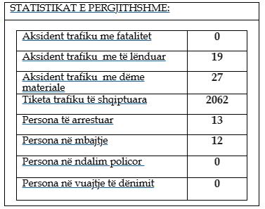 Gjatë kësaj periudhe kanë ndodhur 19 aksidente me të lënduar dhe 27 me dëme materiale.