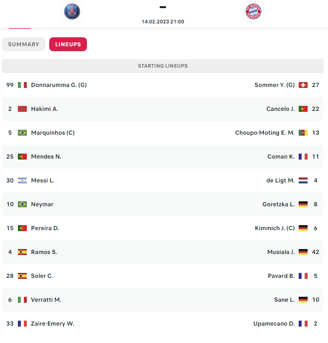 Formacionet zyrtare: Paris SG – Bayern
