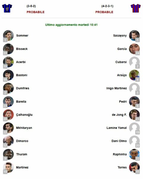 Konfirmohet kështu reparti i mesfushës me Montjuic, së bashku me Pedri e De Jong në mesfushë, kurse përpara tyre Dani Olmo që do t’i mbështesë Lamine Yamal, Ferran Torres e Raphinha.
