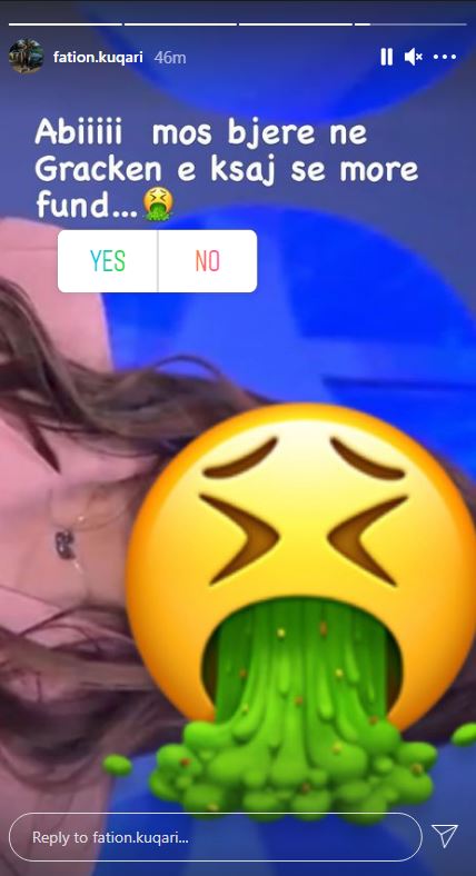Së fundi, Fation Kuqari ka publikuar imazhe të saj në storien e tij në Instagram duke shkruar se nuk e duron dhe i vinte ta thyente telefonin derisa e shihte atë në studio.