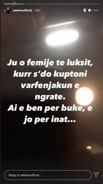 Së fundmi, Adelina ka publikuar një shkrim në rrjetin social “Instagram”, me anë të së cilit iu është drejtuar fëmijëve të familjeve të pasura.