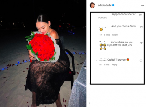 Ndjekësit kanë shpërthyer menjëherë në komente, duke përmendur emrin e reperit dhe duke e përgëzuar për surprizën romantike.