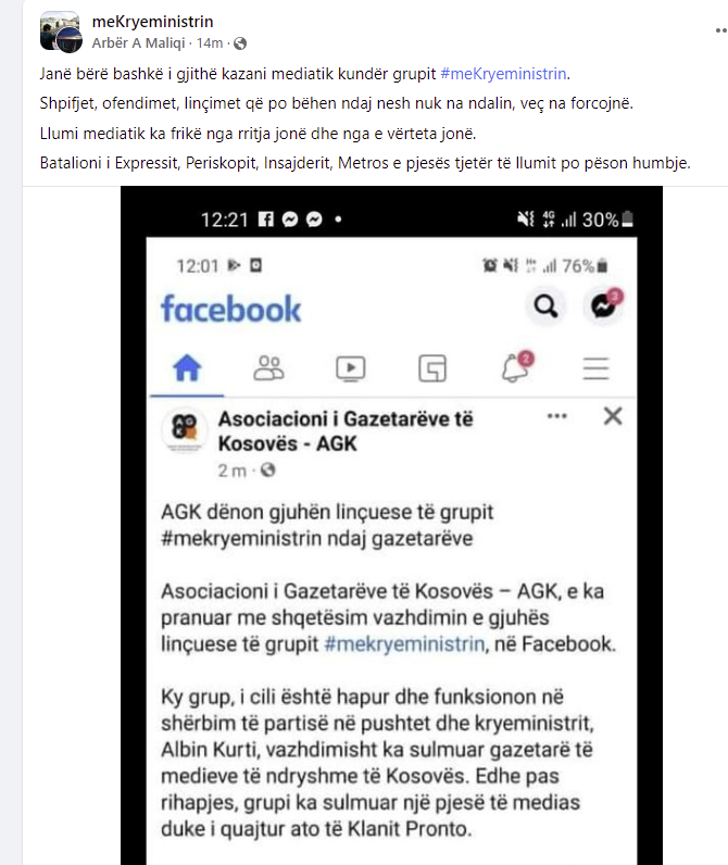 AGK së fundi ka dënuar linçimet që po bëhen nga ana e grupit famëkeq të Vetëvendosjes në Facebook, “MeKryeministrin”. Por, grupi në fjalë nuk është zmbrapsur dhe ka kundërsulmuar.