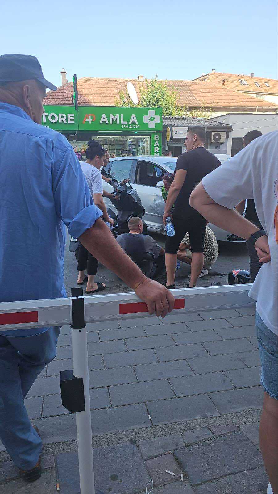 Aksident i rëndë në Prishtinë mes veturës dhe motoçikletës, një person shihet i shtrirë