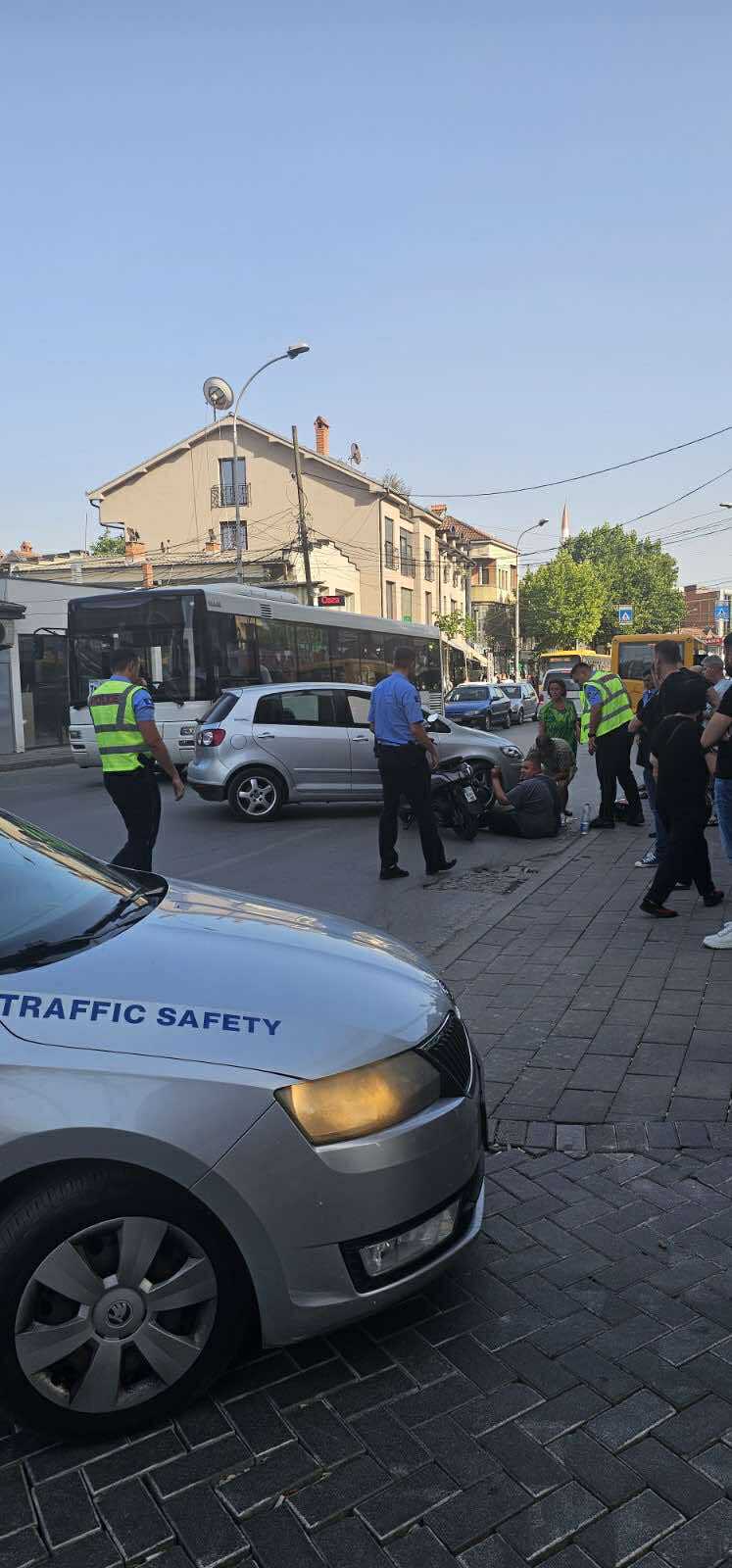 Aksident i rëndë në Prishtinë mes veturës dhe motoçikletës, një person shihet i shtrirë