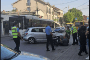 Aksident i rëndë në Prishtinë mes veturës dhe motoçikletës, një person shihet i shtrirë