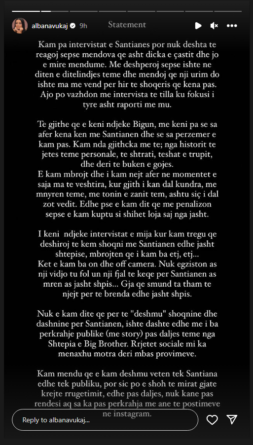 Të njëjtës vendosi Alba t’i reagojë përmes Instagramit zyrtar.