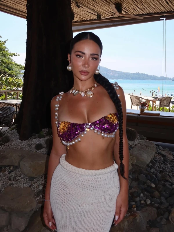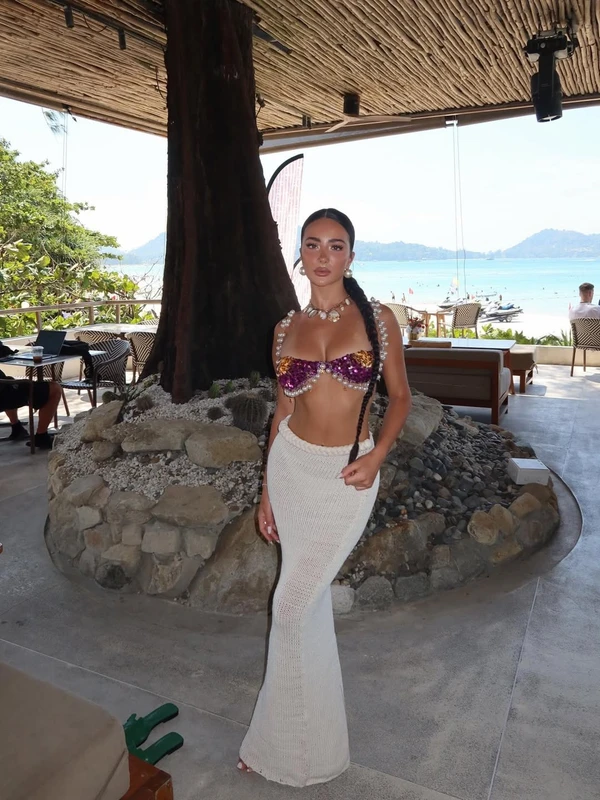Në imazhet e publikuara, Alba shfaqet mjaft elegante e veshur me një fustan të gjatë plazhi, ndërsa në pjesën e sipërme kishte zgjedhur një palë bikini mjaft interesante me shkëlqim, të zbukuruara me disa perla që i jepnin një pamje edhe më verore dhe plot stil.