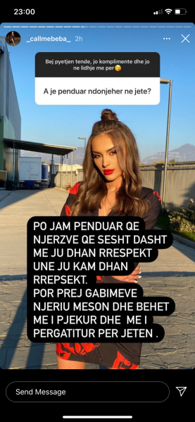 E pyetur nga ndjekësit në Instagram, se a është penduar ndonjëherë në jetën e saj, Ana ka treguar se është penduar për respektin e dhënë ndaj njerëzve që sipas saj, nuk e kanë merituar.