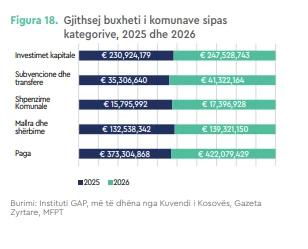 Instituti GAP ka publikuar analizën mbi projektbuxhetin komunal për vitin 2026, ku parashihet rritje e shpenzimeve në të gjitha kategoritë kryesore krahasuar me vitin 2025. Megjithatë, raporti nënvizon se shpërndarja e investimeve nga niveli qendror vazhdon të shoqërohet me dallime të konsiderueshme mes komunave.