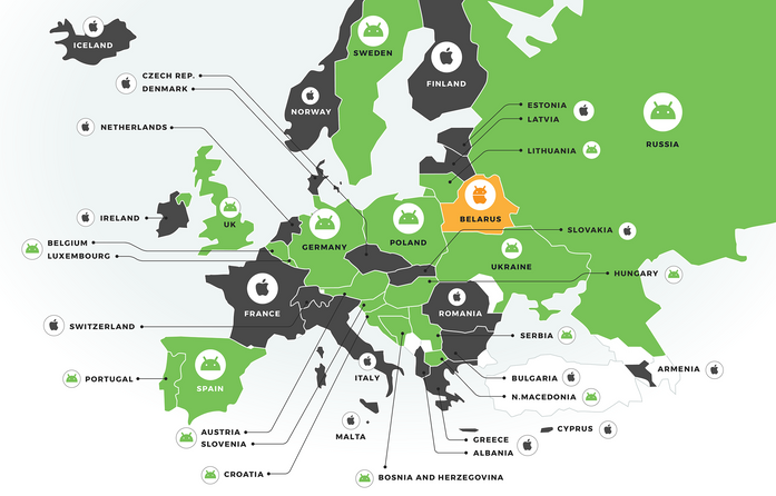 Kosova nuk ështëe përfshirë në këtë hartë, ashtu siç nuk është as Mali i Zi. Por, vendi ynë vëllazëror Shqipëria duket se sërish ka zgjedhur një palë humbëse [siç ka ndodhur në Luftërat Botërore] pasi në hartë shihet se është me I-phone. Serbia në anën tjetër për fat të keq kësaj here ndodhet në anën ‘fituese’ të historisë, me Android. /Periskopi