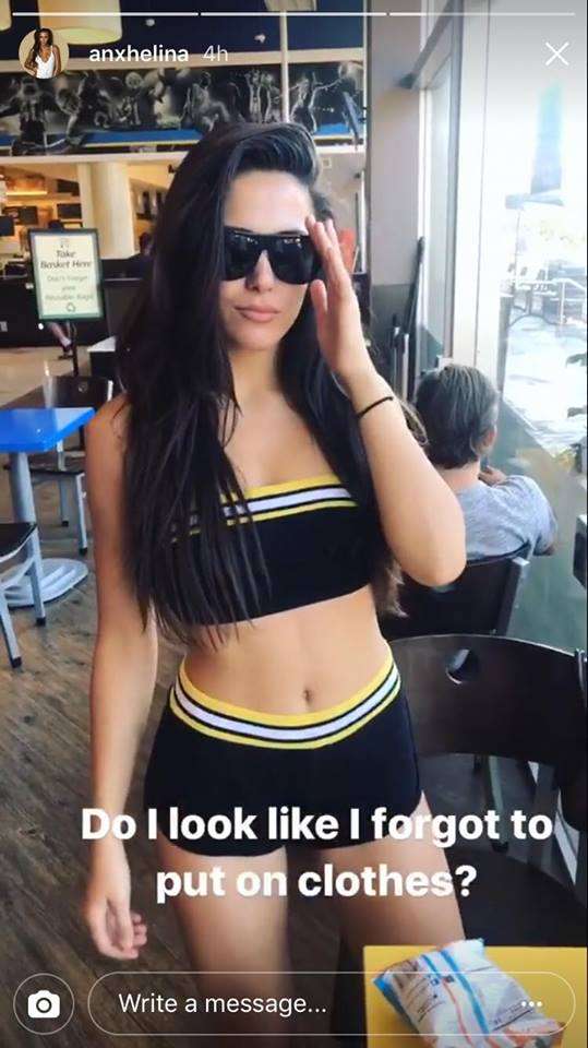 Së fundi, Anxhelina ka postuar një foto në të cilën pyet nëse duket se ka harruar të veshë rrobat.