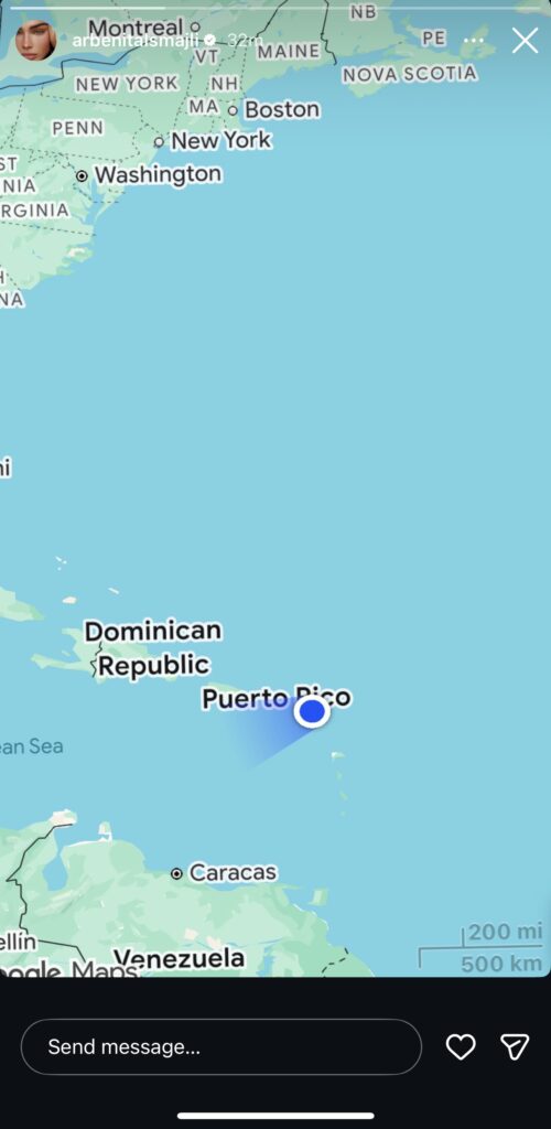 Me anë të një fotografie tregoi që gjendet në Puerto Rico, një vend i nxehtë bregdetar.