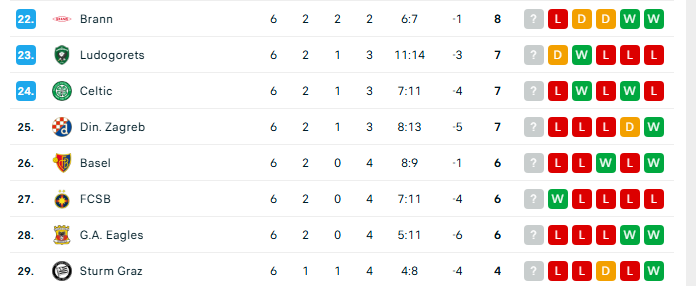 Dinamo Zagreb ka shtatë pikë të grumbulluara në gjashtë xhiro dhe gjendet në pozitën e 25-të, vetëm një vend larg play-offit.