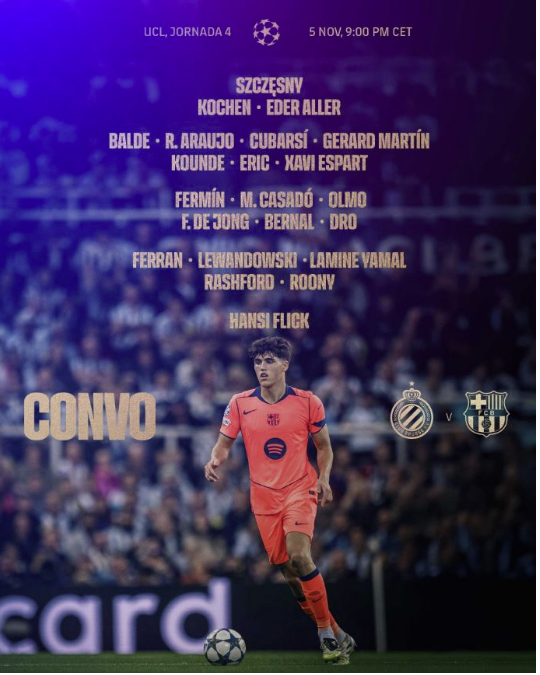 Barcelona ka publikuar listën e tyre për ndeshjen e Ligës së Kampionëve ndaj Club Brugges.