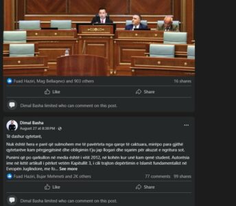 Kryetari i Kuvendit të Kosovës, Dimal Basha, ka ndaluar komentet për qytetarët.