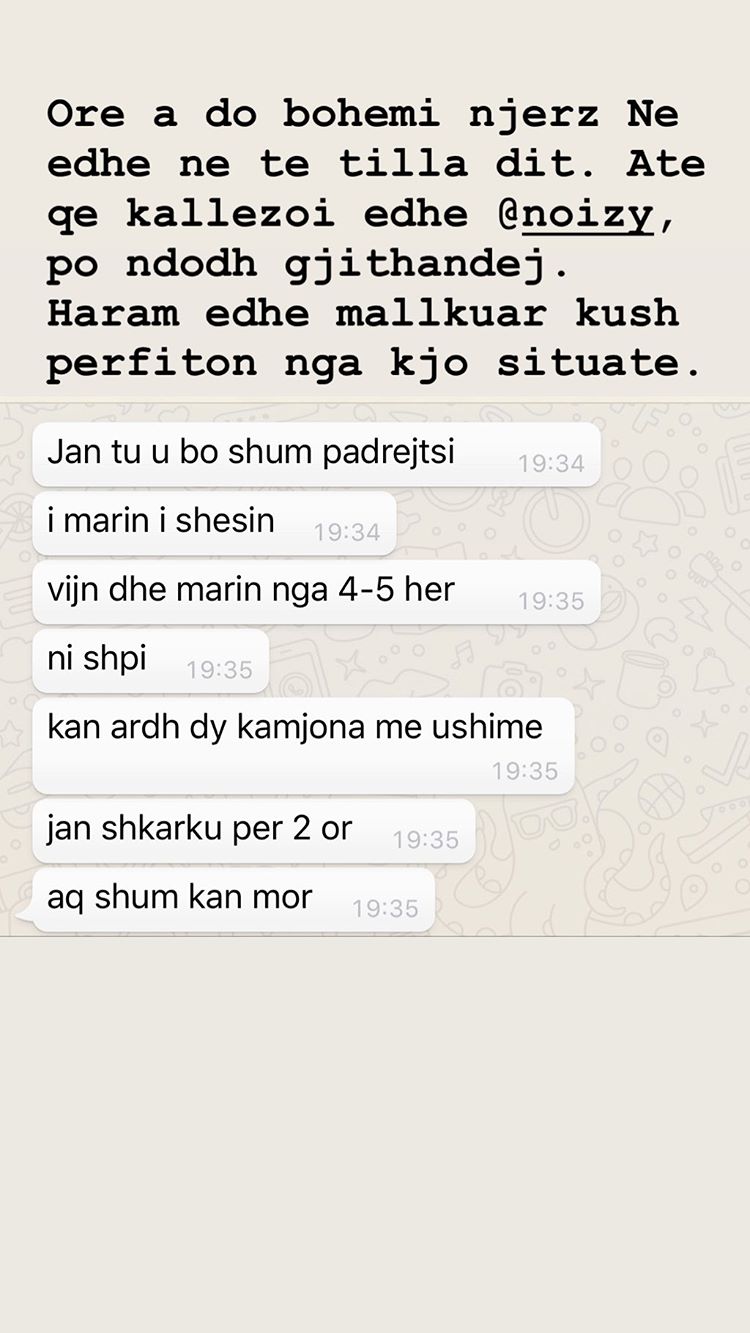 “Ore a do bohemi njerëz Ne edhe në të tilla ditë. Atë që kallëzoj edhe Noizy po ndodh gjithandej. Haram edhe mallkuar kush përfiton nga kjo situate”, ka shkruar Besi.