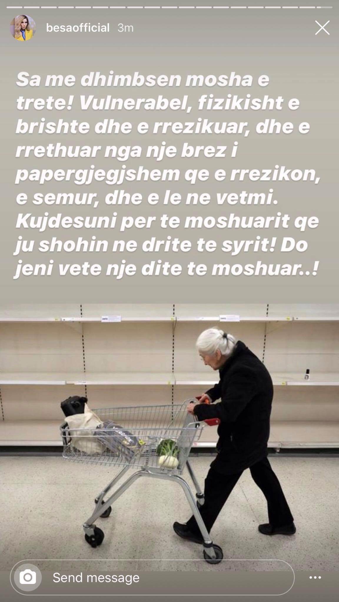 Besa Kokëdhima ka këshilluar që të kujdesemi dhe ti ruajmë të moshuarit.