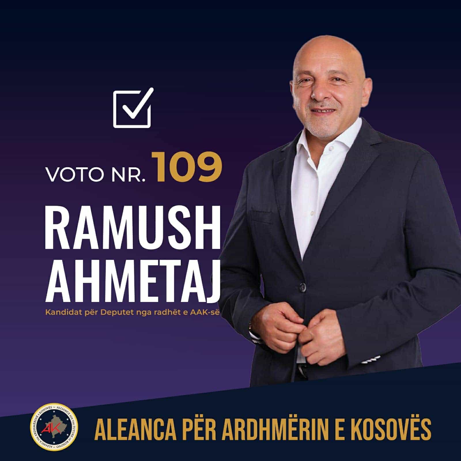 Biznesmeni Ramush Ahmetaj në listën e AAK-së ka numrin 109