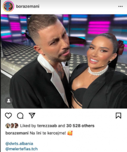 Ajo shfaqet krah Donaldit, ku shkruan “Na lini të kërcejmë”. Kjo pasi ajo është prezantuesja e programit të ri “Dancing Ëith the Stars”.