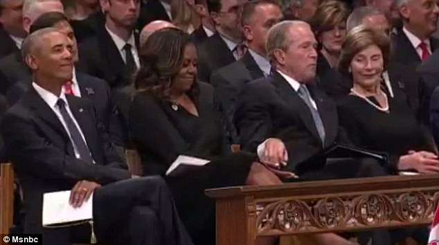 Bush kapet duke i dhënë karamele gruas së Obamas në funeralin e McCain