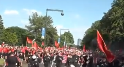 Dusseldofi “vishet” kuqezi, tifozët nisin marshimin drejt stadiumit