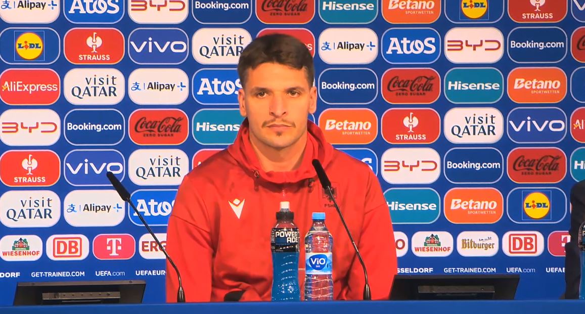 Kapiteni i Kombëtares së Shqipërisë, Berat Gjimshiti u paraqit në konferencë për media para ndeshjes…