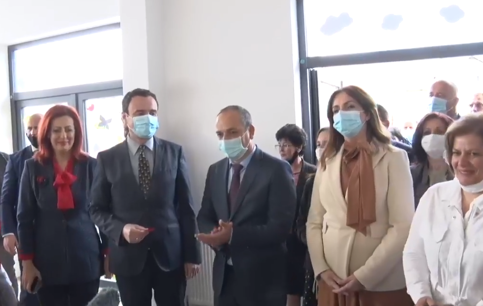 Kryeministri, zv.kryeministrja, një ministre dhe një kryetar komune mblidhen për ta përuruar një çerdhe