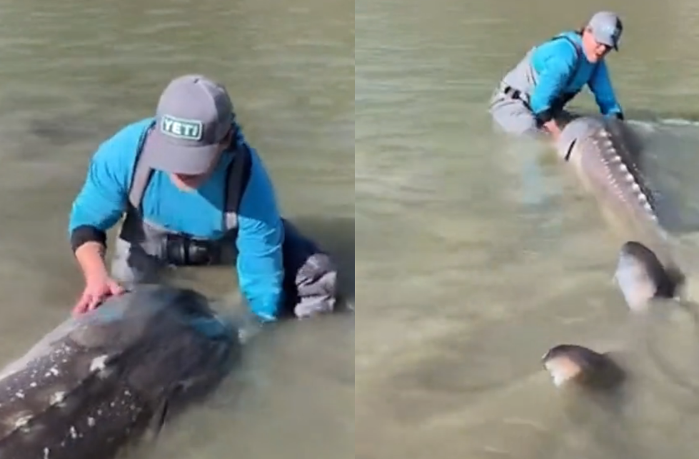 Një video që e ka publikuar “The Sun” paraqet një njeri që drejton një peshk…