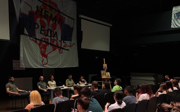 SKANDAL: Harta e Kosovës me flamurin e Serbisë shfaqet në një panel diskutimi në Mitrovicë të Veriut, pjesëmarrës pati edhe nga UP