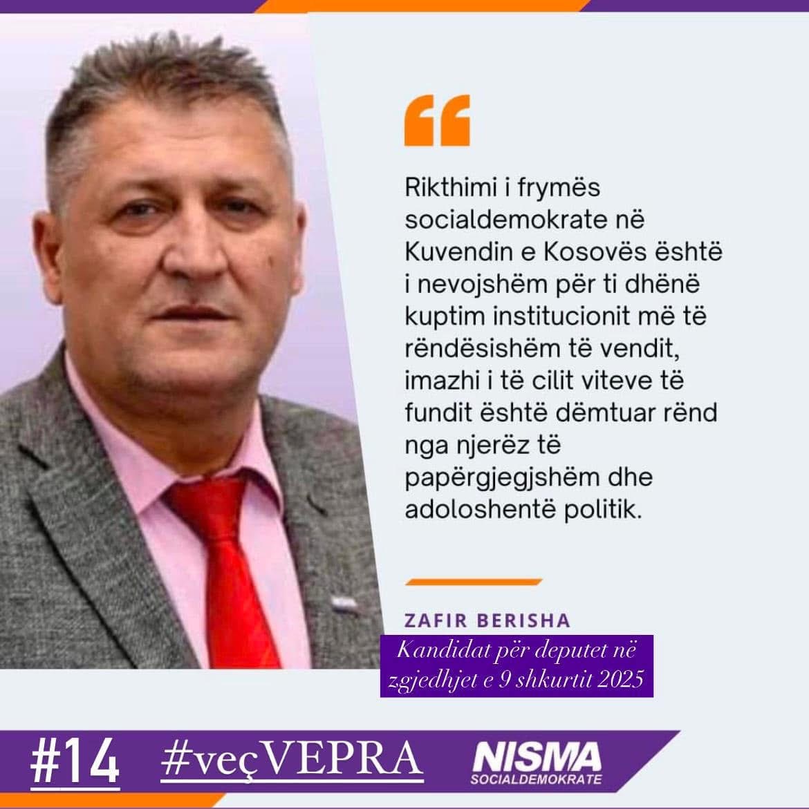 Kandidati i NISMAS për deputet, Zafir Berisha i cili garon me numrin 14 ka premtuar…
