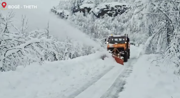 Reshje të dendura bore në veri të Shqipërisë, bllokohet shoferi në aksin Theth-Bogë