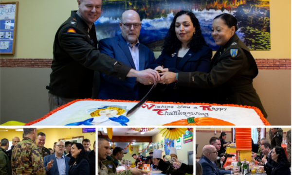 Hovenier i shoqëruar nga Osmani festojnë Ditën e Falënderimeve me ushtarët amerikanë që shërbejnë në Kosovë