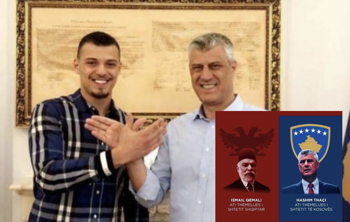 “Ati themelues i shtetit shqiptar dhe ati themelues i shtetit të Kosovës”- Djali i Thaçit publikon foto të Ismail Qemalit dhe Hashim Thaçit