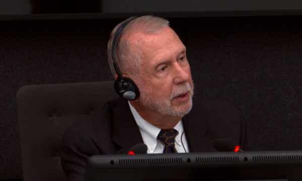 Ish-këshilltari politik i Wesley Clark, Michael Durkee gjatë dëshmisë së tij në Hagë duke u…