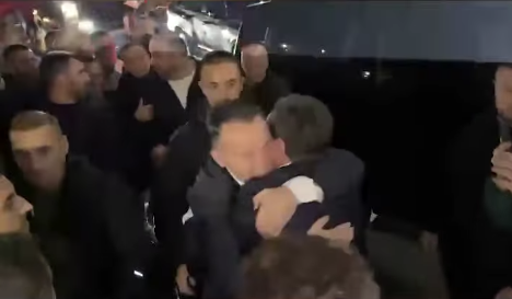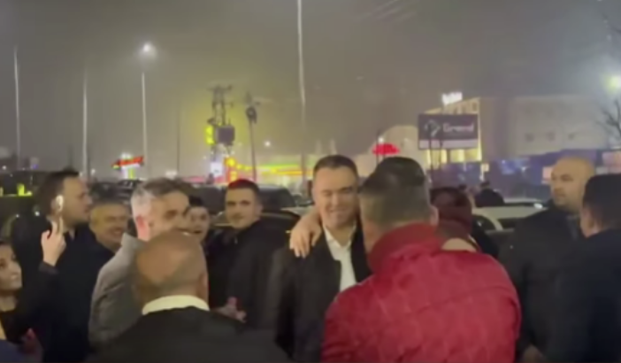 Albin Kurti me të zbritur nga vetura, e përqafon fortë fituesin e Mitrovicës së Jugut,…