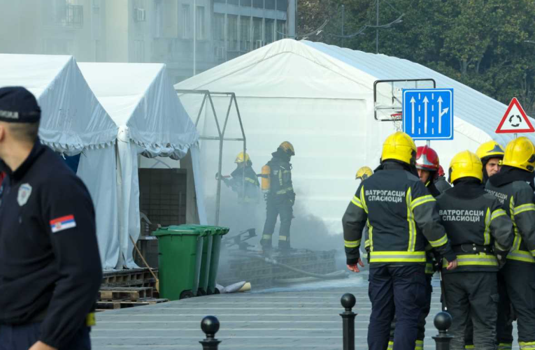 Të shtëna me armë pranë Parlamentit të Serbisë, plagoset një person dhe digjet një tendë