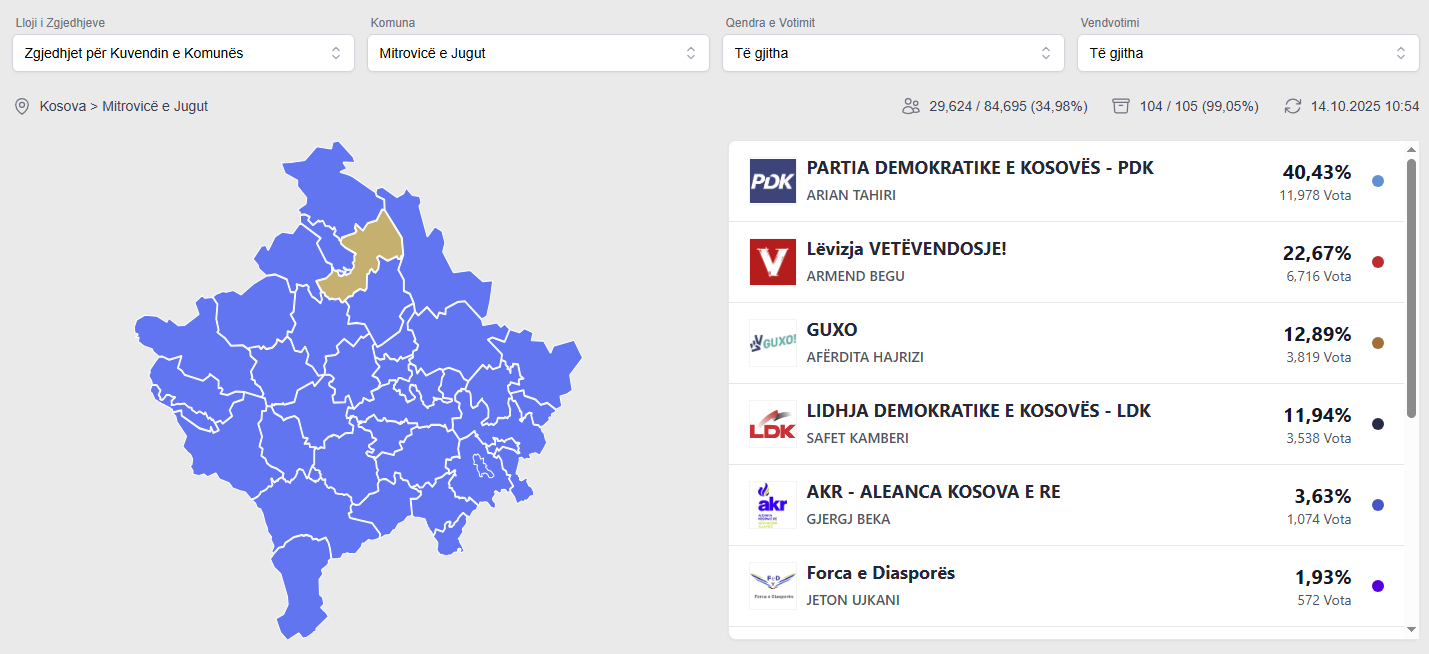 Numërimi afër përfundimit në Mitrovicën e Jugut: PDK 43%, VV mbet e dyta me 22%