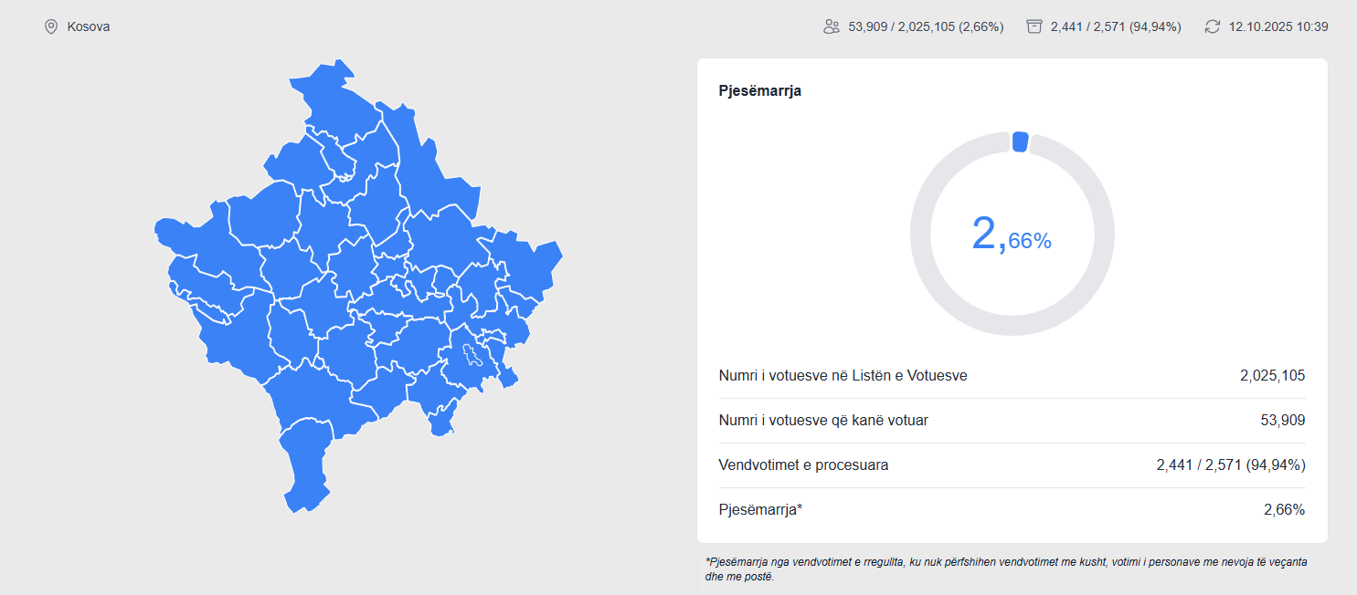 Komisioni Qendror Zgjedhor ka publikuar platformën elektronike të dhënat për pjesëmarrjen në votime për çdo…