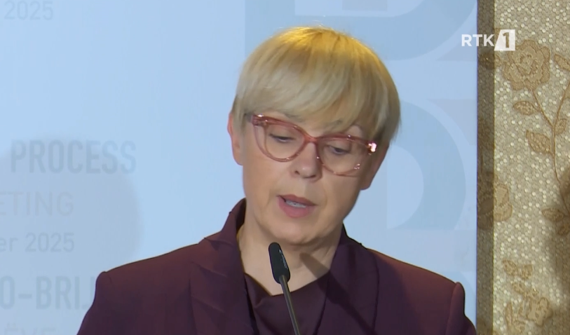 Presidentja e Kosovës, Vjosa Osmani, në një prononcim për media pas Samitit të Brdo-Brionit në…