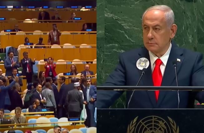 Momenti kur delegatët largohen nga Asambleja e OKB-së, pak çaste para se Netanyahu të fillojë fjalimin