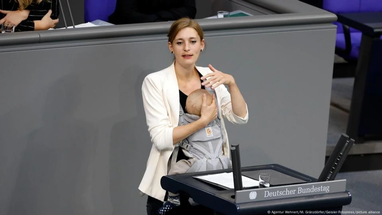 Deputetja e Parlamentit gjerman mban fjalim në Bundestag me fëmijën e saj në ‘kangur’