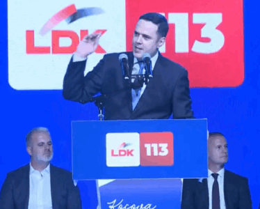 Kryetari i Lidhjes Demokratike të Kosovës (LDK) Lumir Abdixhiku, gjatë hapjes së fushatës, në fjalimin…