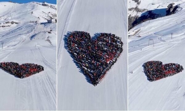 Homazh për viktimat e zjarrit në Zvicër, skiatorët krijojnë zemrën në borë